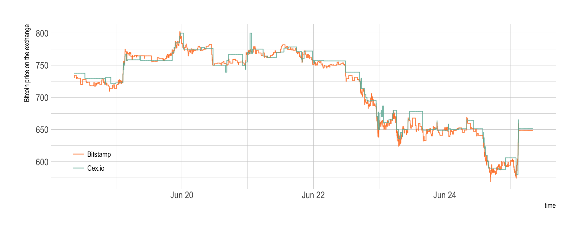 scale_color_manual(values=c(col_bitstamp, col_cex), name="", labels = c("Bitstamp", "Cex.io") ) +