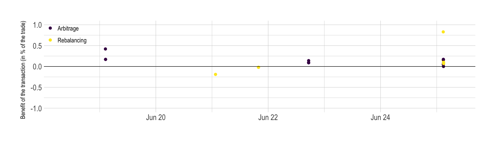 scale_color_viridis(discrete=TRUE, labels=c("Arbitrage", "Rebalancing"), name="") +